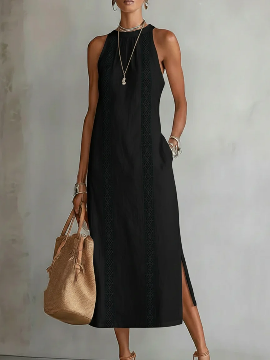 🌿 Retro Cozy Lace Minimalist Linen Dress — Timeless. Elegant. Effortlessly You.